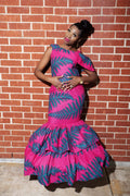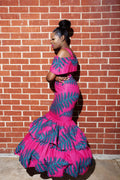 This stunning mermaid-style gown is designed to make a bold statement at any formal event or celebration. The fitted bodice beautifully accentuates the silhouette before flaring dramatically from the knees into a full, voluminous skirt. The dress has a sophisticated neckline, offering both comfort and glamour. Perfect for special occasions, weddings and prom. This gown blends classic elegance with modern flair, ensuring you stand out in every crowd. This outfit can be custom made to your size if needed, visit our custom made tab.
